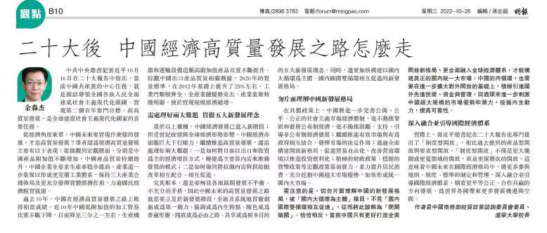 近日,香港中通社采访ok138太阳集团古天乐党委副书记、校长余淼杰教授,《香港明报》对采访进行报道,现将原文及图片转载如下: